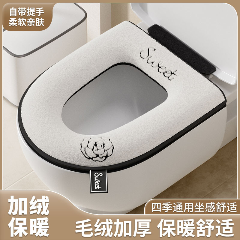 加大带提手秋冬柔软马桶套坐垫云朵绒坐便垫家用可水洗马桶垫加厚