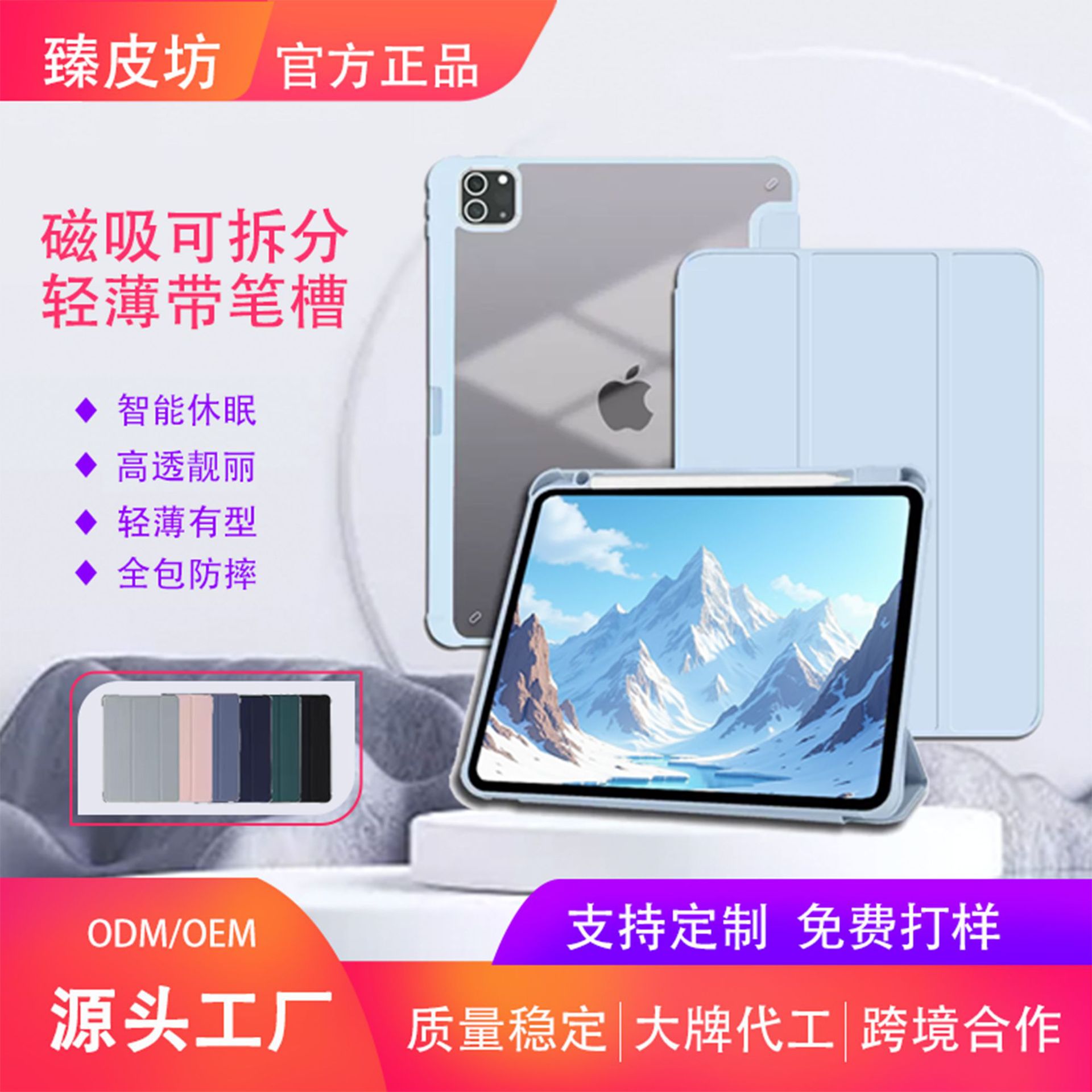 Ipad保護カバーpro10.5ペン付き溝10.2磁気吸引air 5皮カバーmini6三つ折りtpuソフトケース