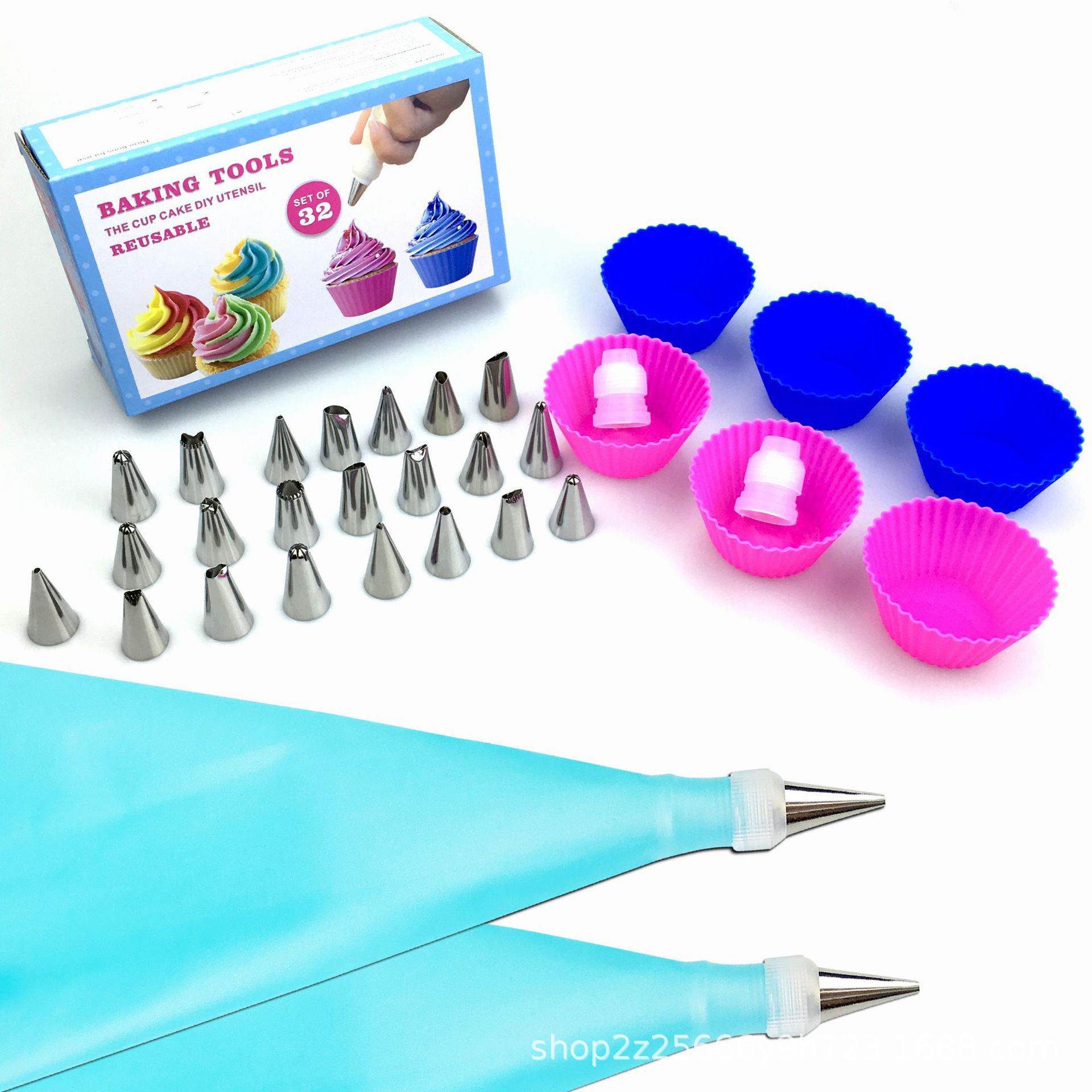 32pcs低価格カラーボックスケーキ焙煎表装ツールシリコン金型カップ表装花口袋セット