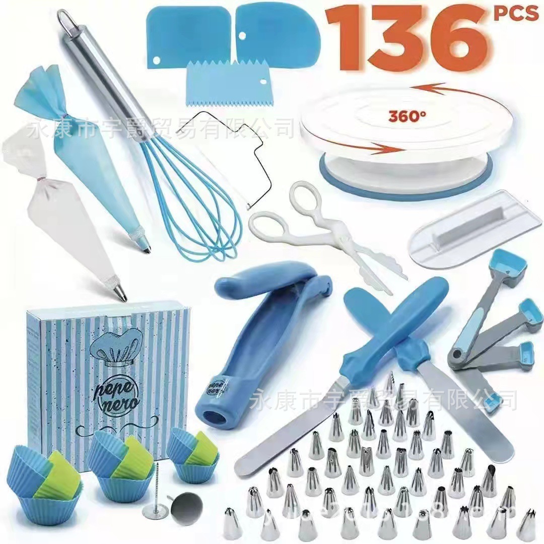 メーカー直供136点セットケーキ回転台セット表装ノズルtpu表装袋シリコンカップ焙煎ツール