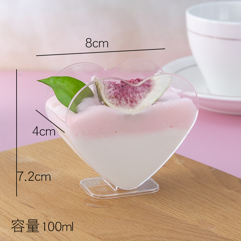 名誉80ml使い捨てパーティー透明プラスチックデザートツインカップムスカップハート型プリンカップ