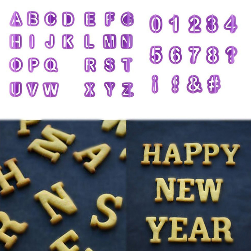 40pcsアルファベット数字プラスチックビスケット金型記号砂糖ケーキ装飾プリント型opp簡単セット
