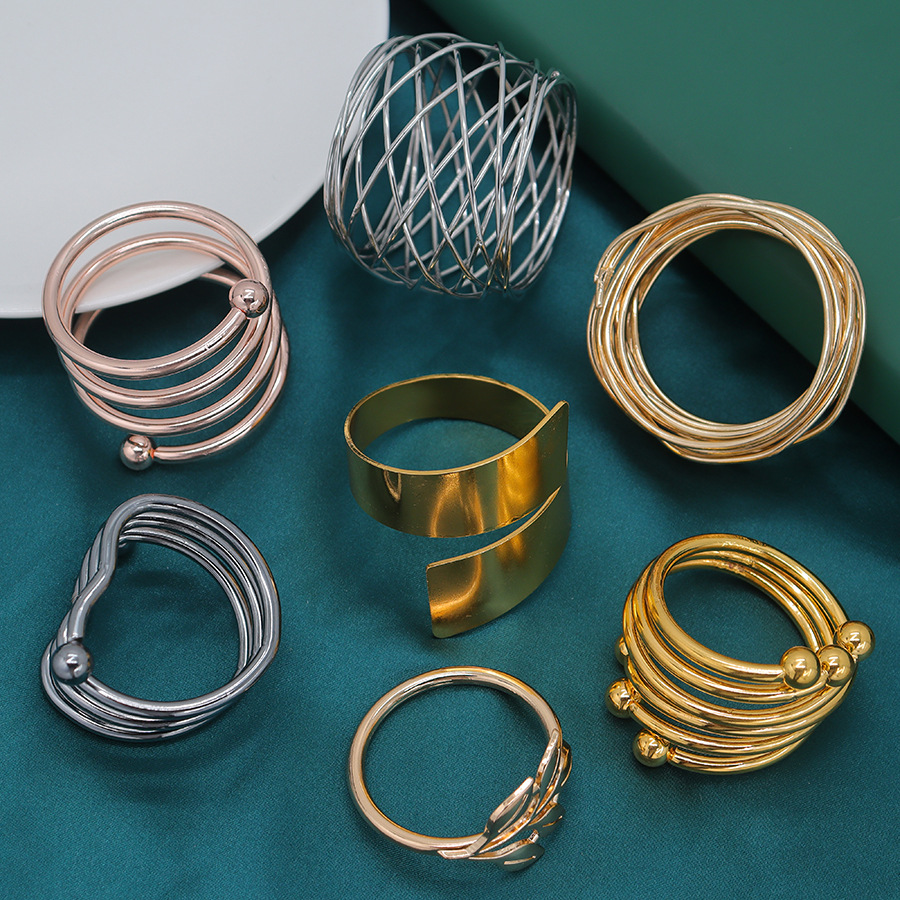 各種類のナプキンリングは金属メッキの透かし彫りをカスタマイズしています。