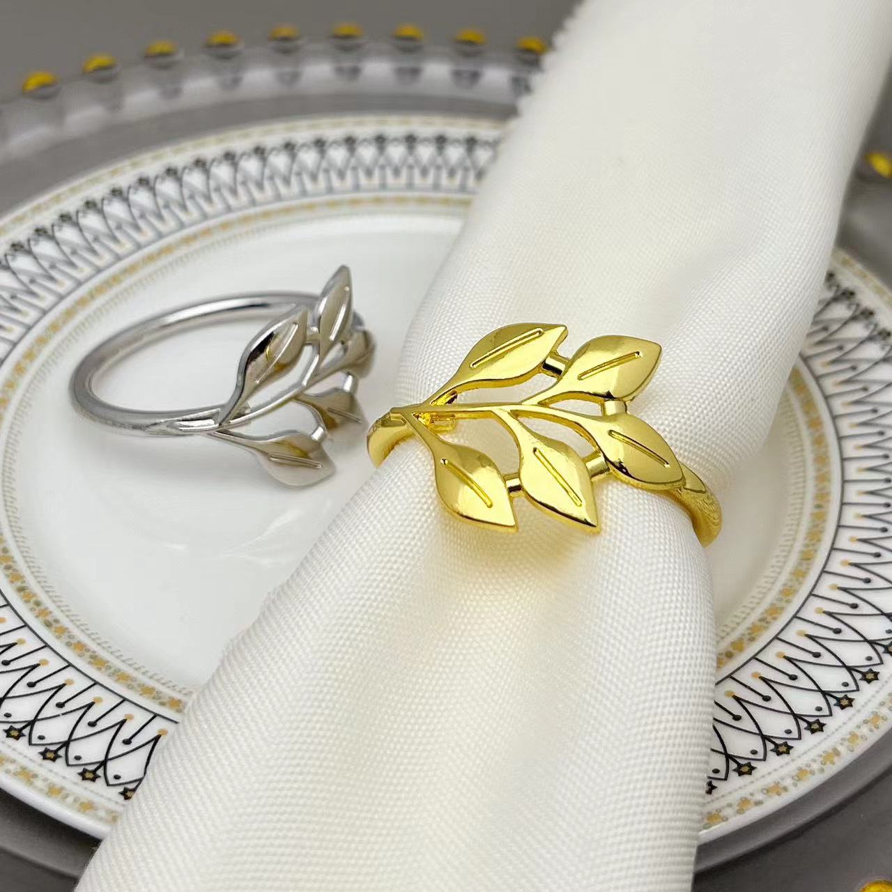 クロスボーダーナプキンリングゴールデンメタルイチョウの葉ナプキンバックルナプキンリングシルバーホテルテーブル卸売ライト高級