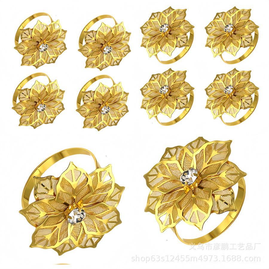 金彩茶花ナプキンリング ホテルの食卓用 ゴールド紫金花ダイヤモンドリング型布リング 結婚式用 精巧