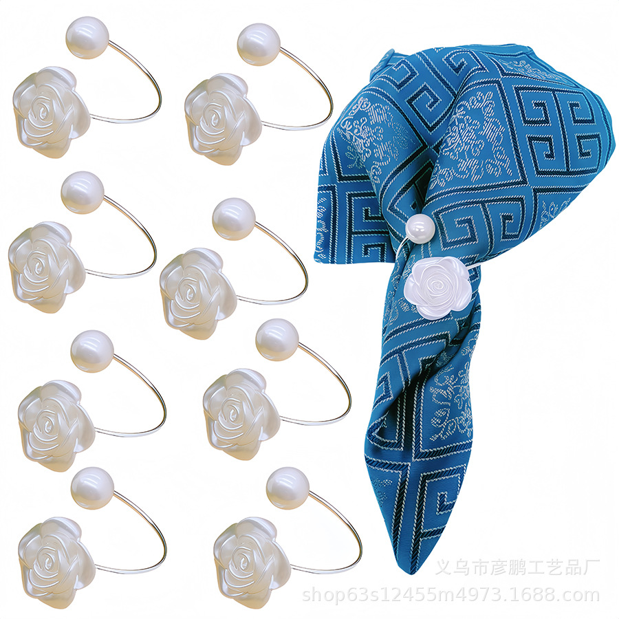 Amazonクリエイティブローズ花ラウンドパールメタルナプキンバックルナプキンリングホテルテーブル卸売
