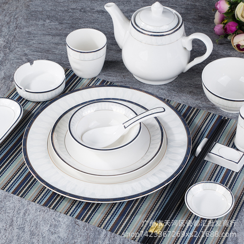 中国風ホテル食器茶室宴会純白セラミックスプーン羽ボウル骨皿組み合わせプレートテーブル食器セット