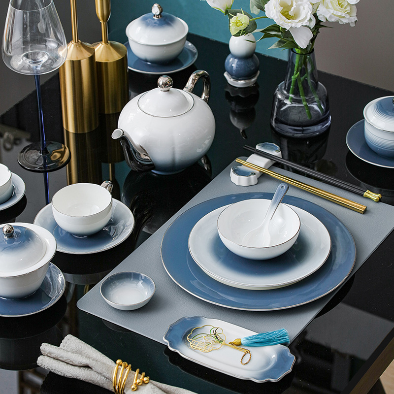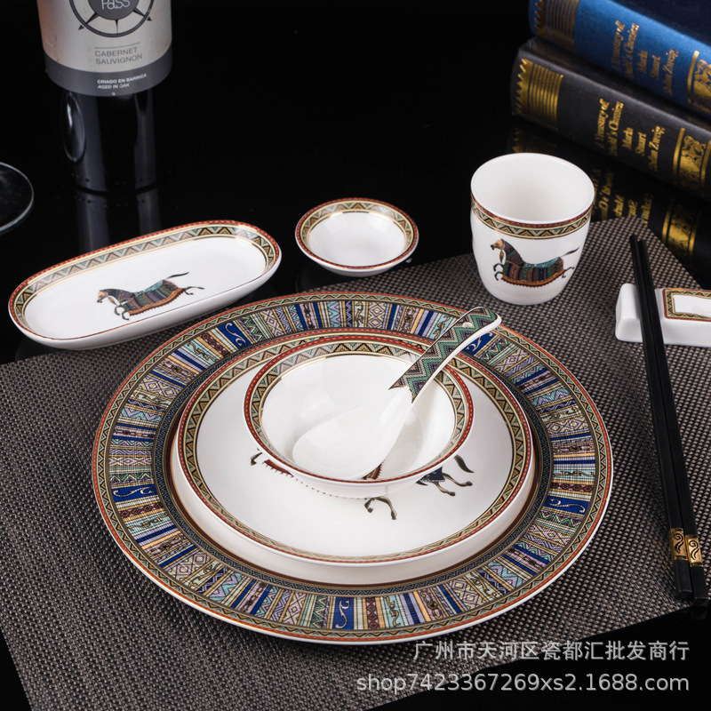 五つ星ホテル会員制高級ボーンチャイナ食器セット、色釉金縁、新中式プレート・ボウル・テーブルセット