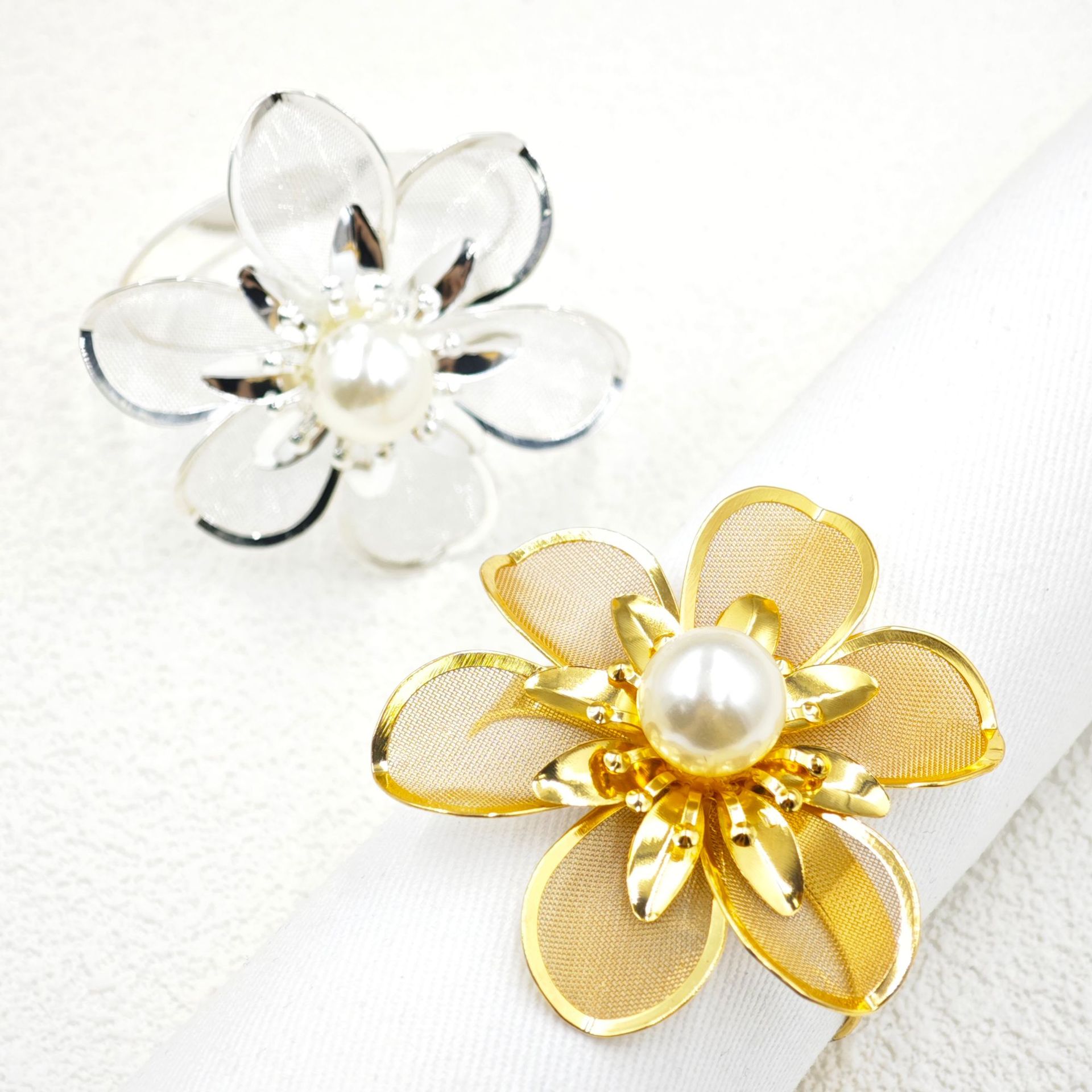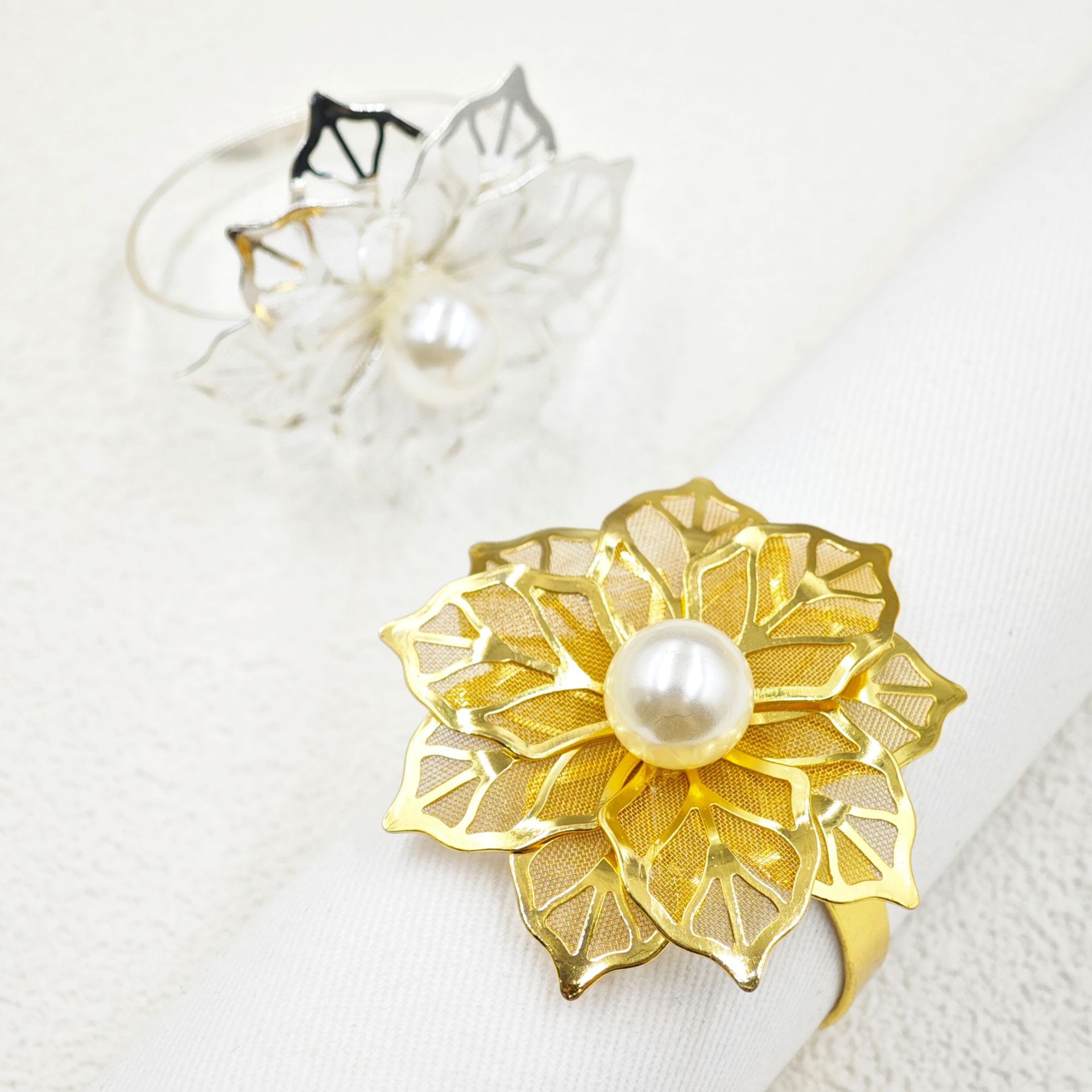 ホテル口布リング金属模擬パールメッシュフラワーナプキンリングナプキンバックルナプキンリング卸売ナプキンバックル