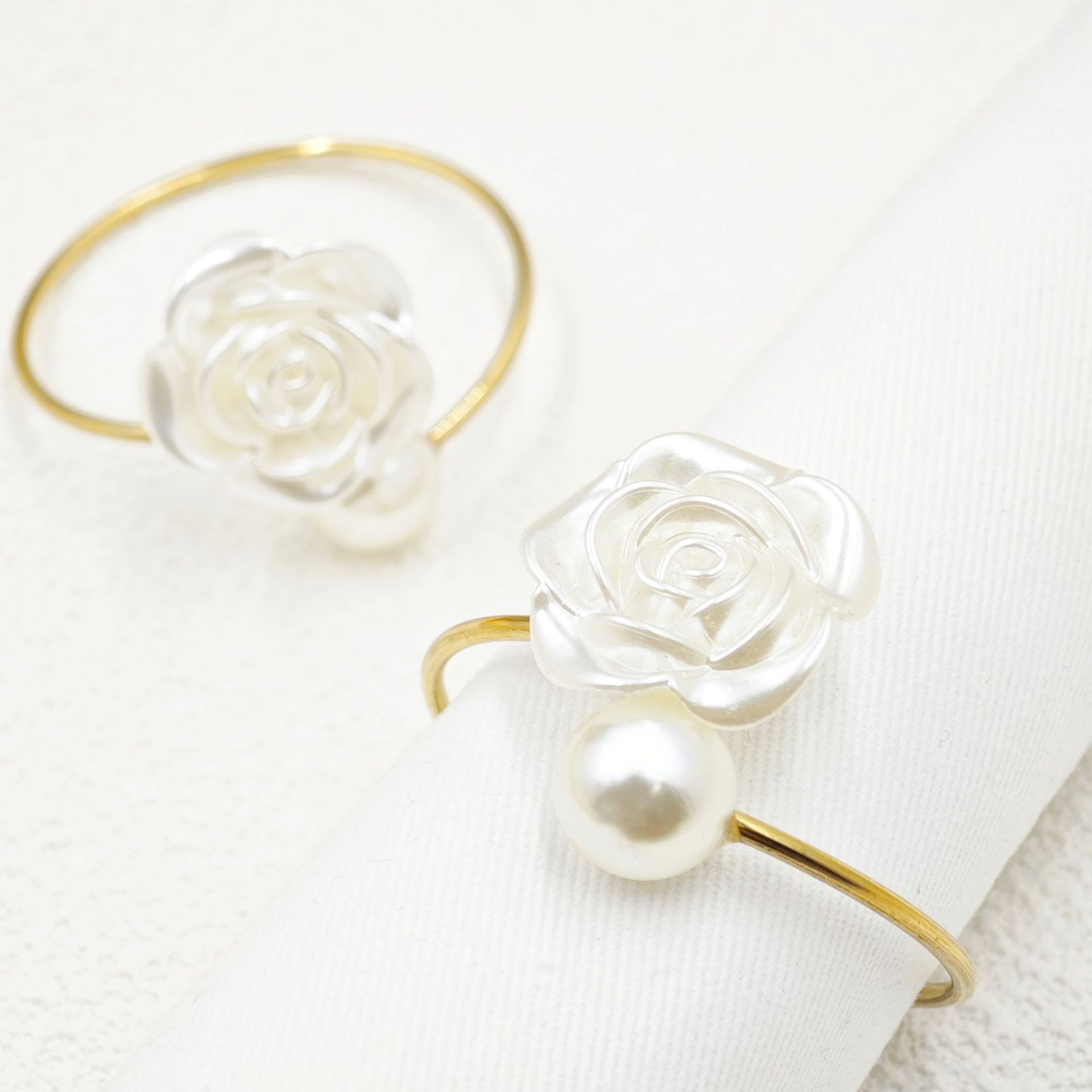 バレンタインデーのウェディングパールナプキンバックルローズクリエイティブラウンドパールナプキンリングモデルルームホテルペーパータオルリング
