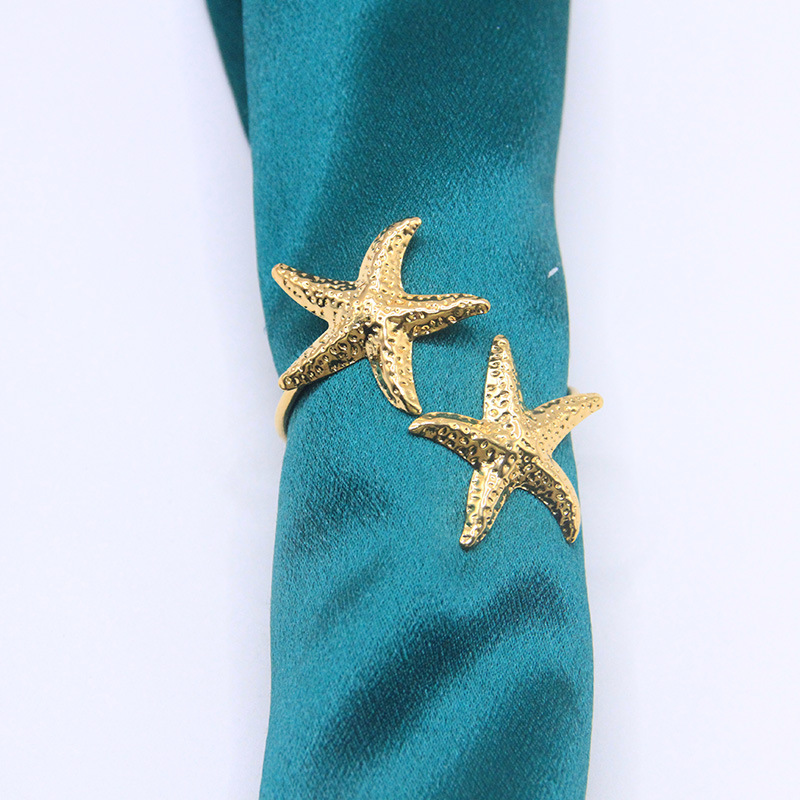 クロスボーダー新しい夏のゴールドとシルバーの誇張されたヒトデ凹凸デザインナプキンバックルナプキンリングナプキンリング卸売