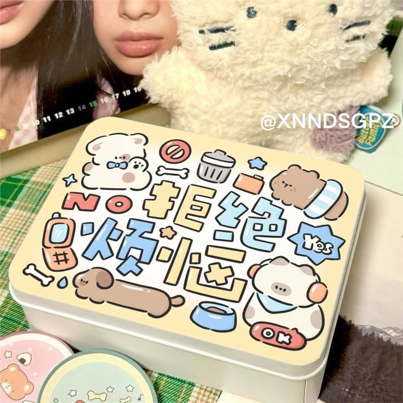 ins クマ落書き収納ボックス高価値小型カードステッカー写真デスクトップ学生かわいい鉄箱プレミアム