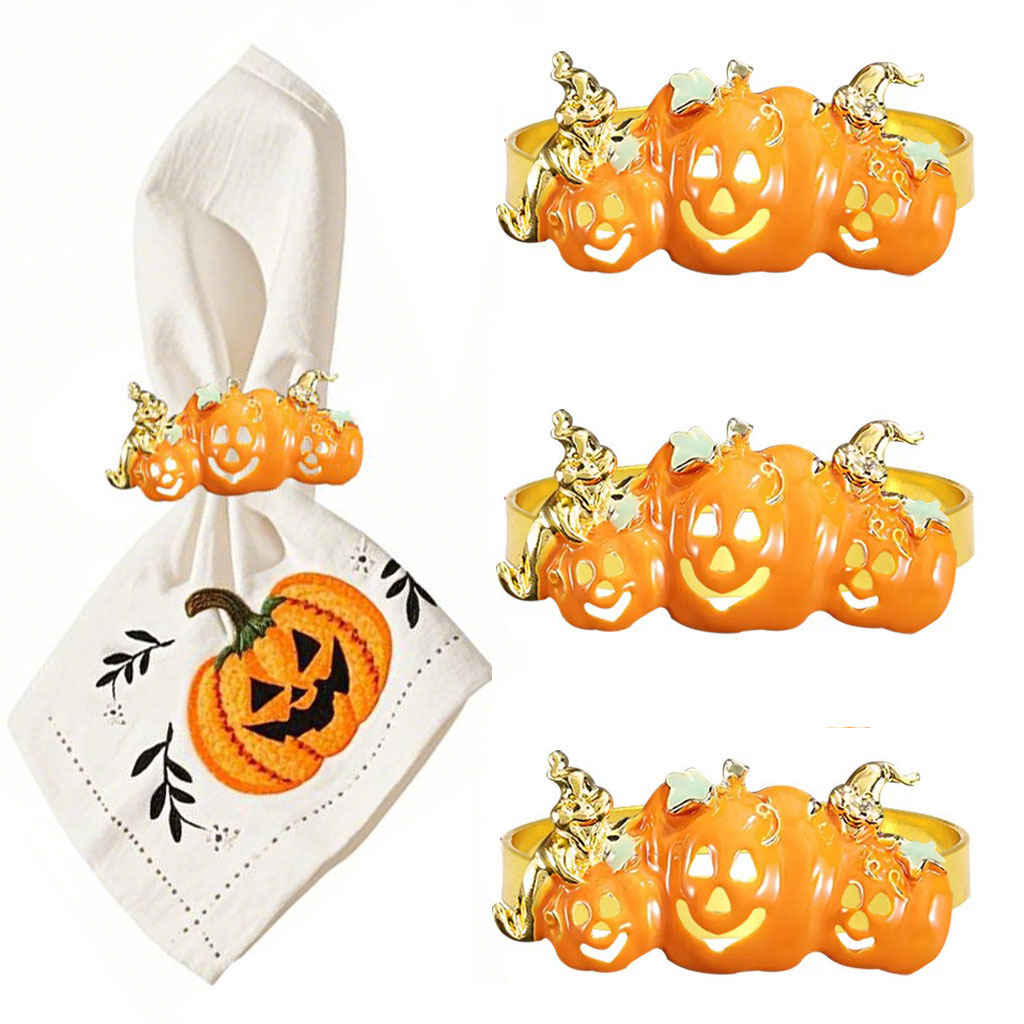 新しいハロウィンナプキンバックルオレンジカボチャナプキンリング面白い小悪魔ナプキンリング合金メーカー卸売