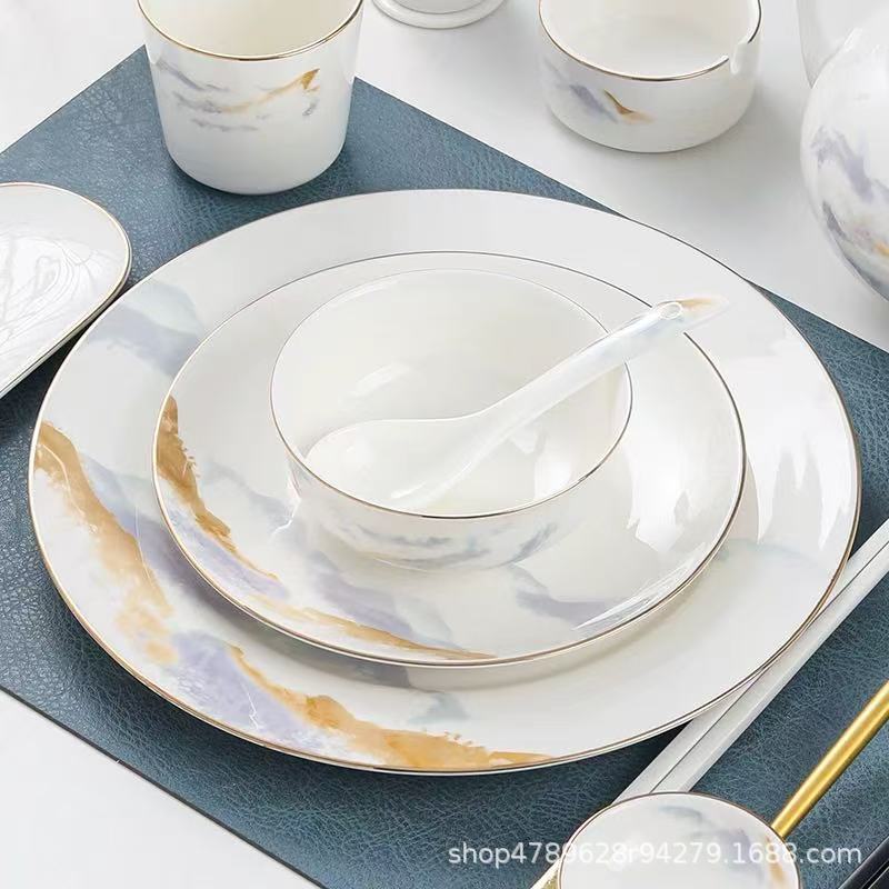 高級軽量高級ニューチャイナスタイル五つ星ホテルボーンチャイナテーブル装飾食器レストランクラブ業務用陶器