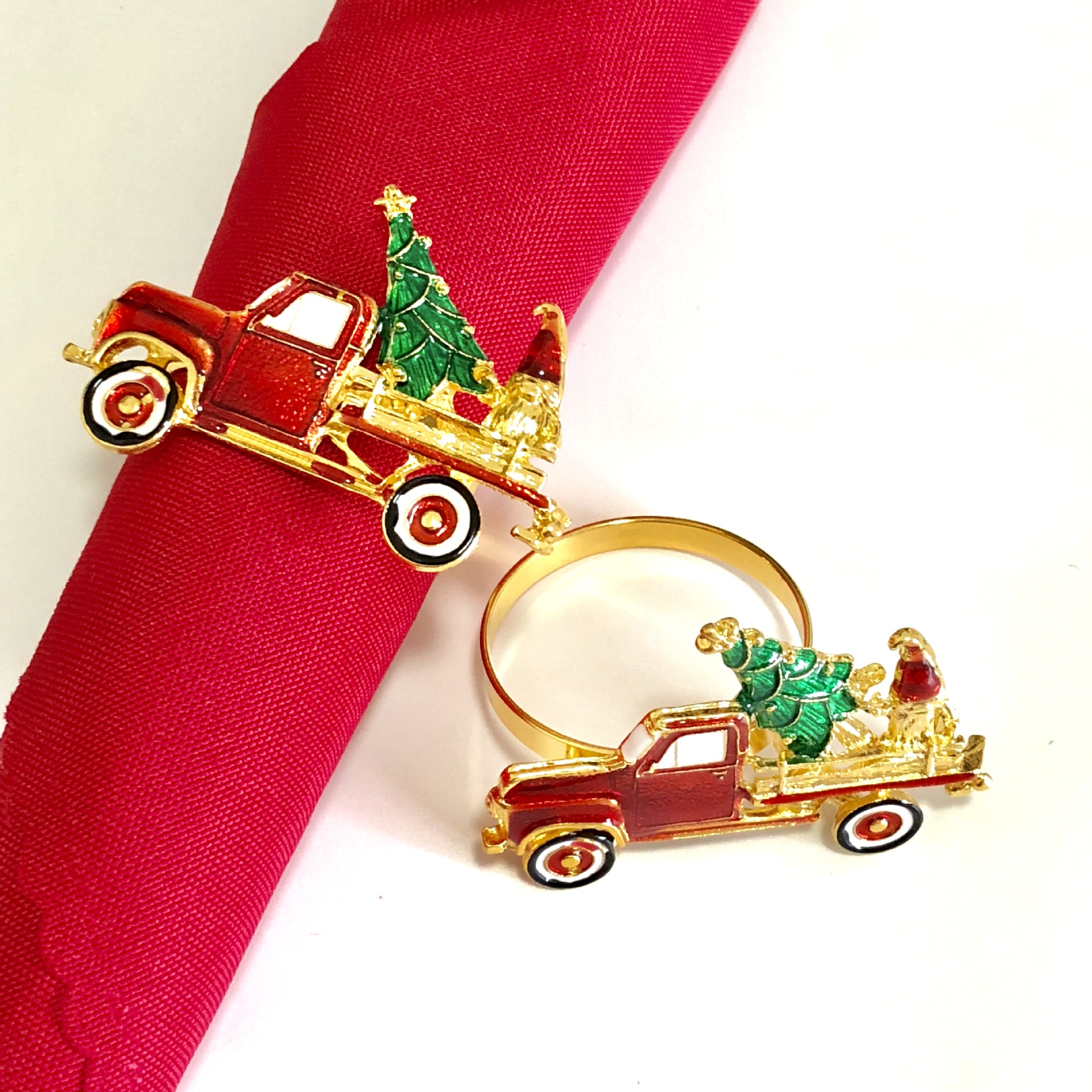 国境を越えた新しいクリスマスツリー赤い車のナプキンリングホテルレストランテーブルセッティング工場直販