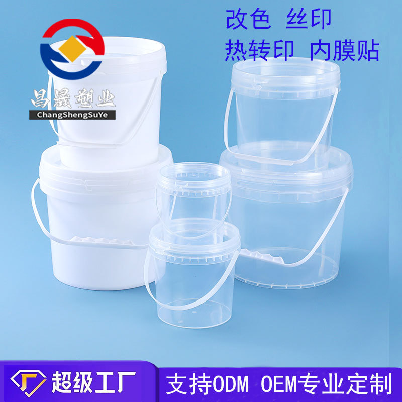 ソース工場食品バケツ 1kg プラスチックバケツ 収納バケツ ポータブルバケツ 小型丸型バケツ ゼリーバケツ フィルムラベル付きバケツ