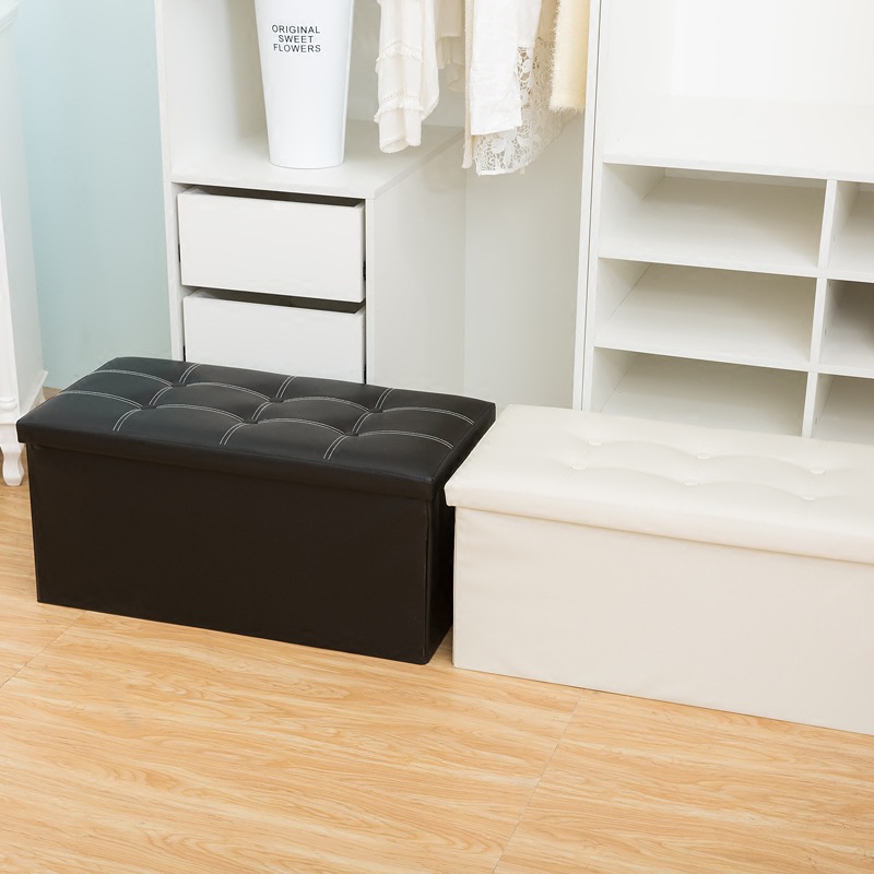 PUレザー折りたたみ収納腰掛け皮質多機能置物腰掛け玩具四角い収納腰掛け