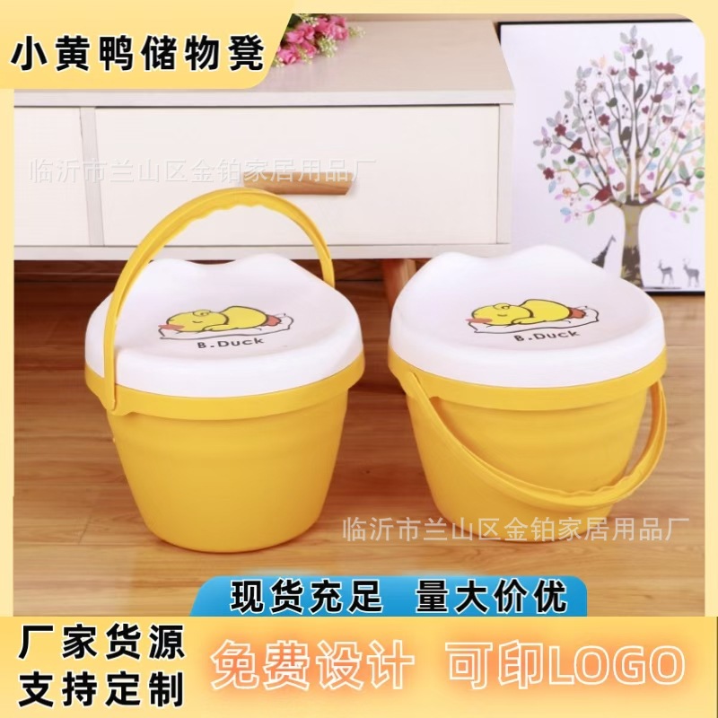 家庭用プラスチックの貯蔵腰掛け子供の漫画のビープ音腰掛けの手提げ蓋付きの収納腰掛けの小さい黄色のアヒルの手提げ桶の釣り桶