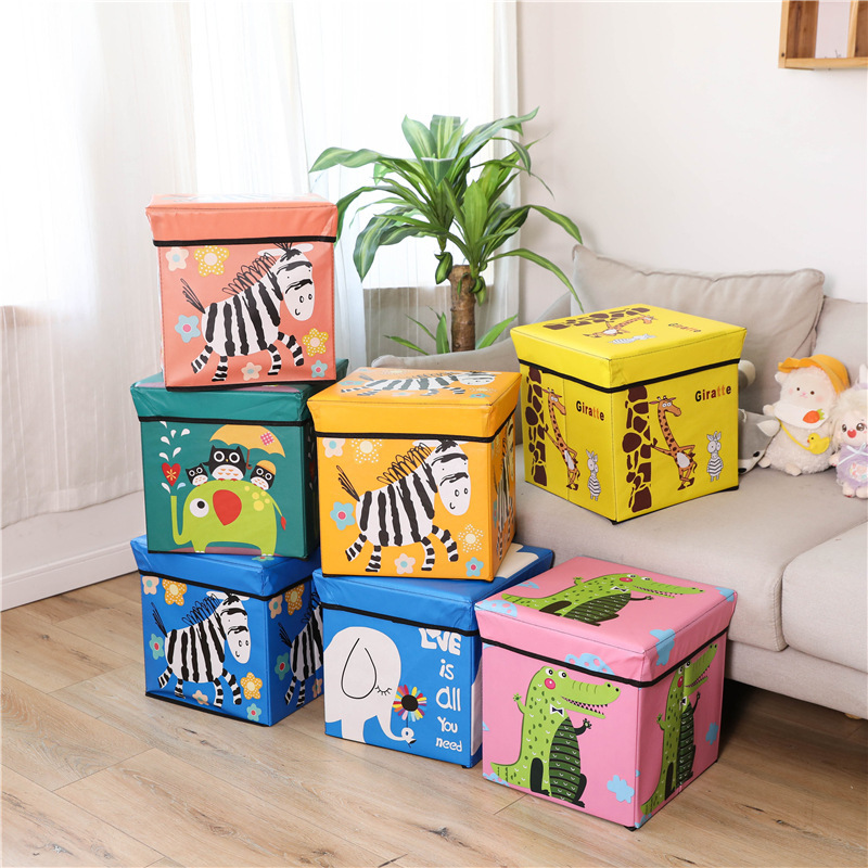 クロスボーダー折りたたみ収納腰掛け子供玩具収納ボックス漫画模様収納腰掛け多機能収納腰掛け卸売り