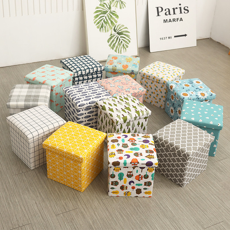 25/30/38角型収納腰掛け布芸収納ボックスソファー腰掛け折り畳み可能玩具収納ボックス家足置き腰掛け