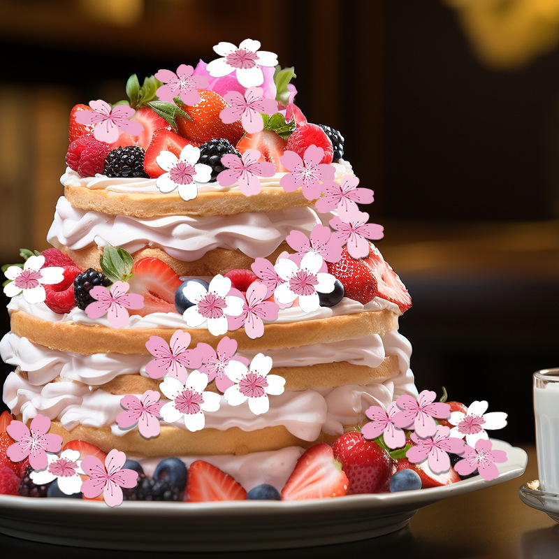 クロスボーダーはもち米紙の桜のケーキを提供します。