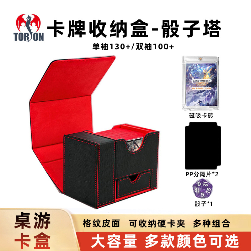 デスクトップゲームカードボックスポータブル三国志収納ボックス pu レザーダイス引き出しボックスゲーム MTG カードボックス PTCG