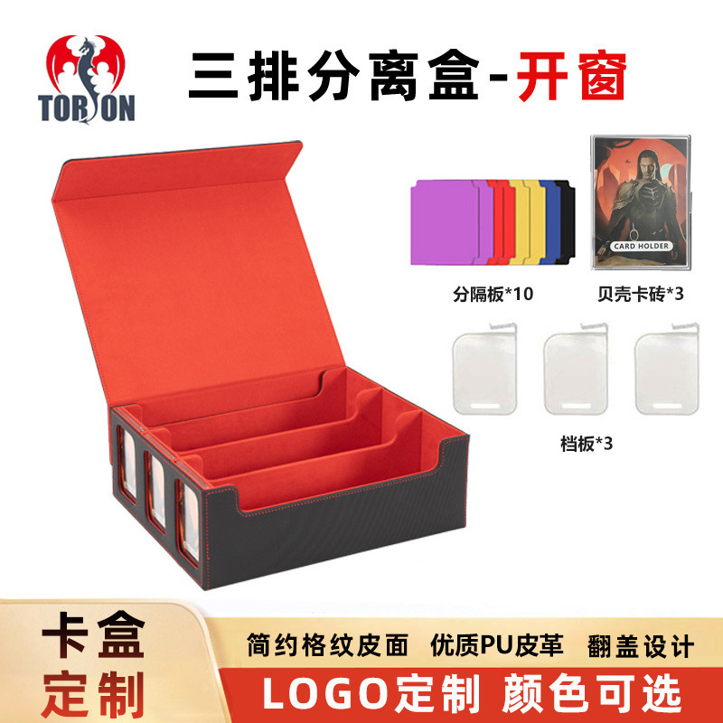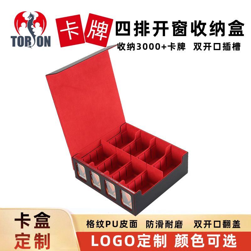 カスタマイズされた大容量磁気 PU レザー 4 列分離ウィンドウ遊戯王 TcgPU ボードゲームカードボックスの加工