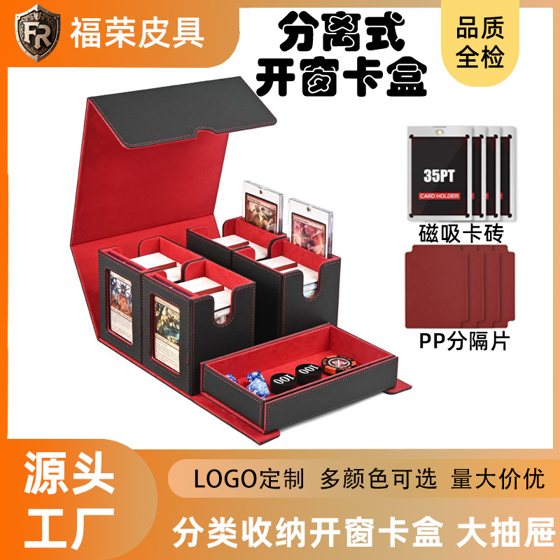 PUレザー製カードホルダー、窓付き、分離式、サイコロゲーム、カードゲーム、スターカード、コレクション、ディスプレイ、カードボックス、収納ボックス