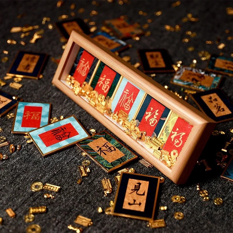 宋錦硬質ボール紙、中国風ライスペーパー、文化的で創造的なギフトパッケージ、金縁の厚みのある額装不要のクリエイティブブックレットカード