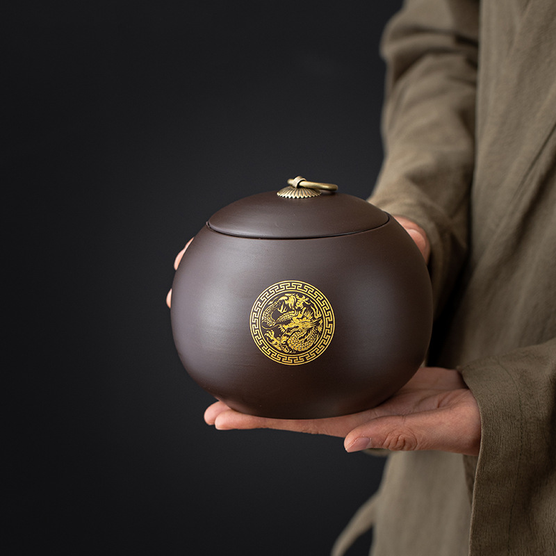 紫砂茶葉缶龍鳳呈祥高級保存茶密封缶プーアル空礼箱包装描金彫刻覚醒茶缶