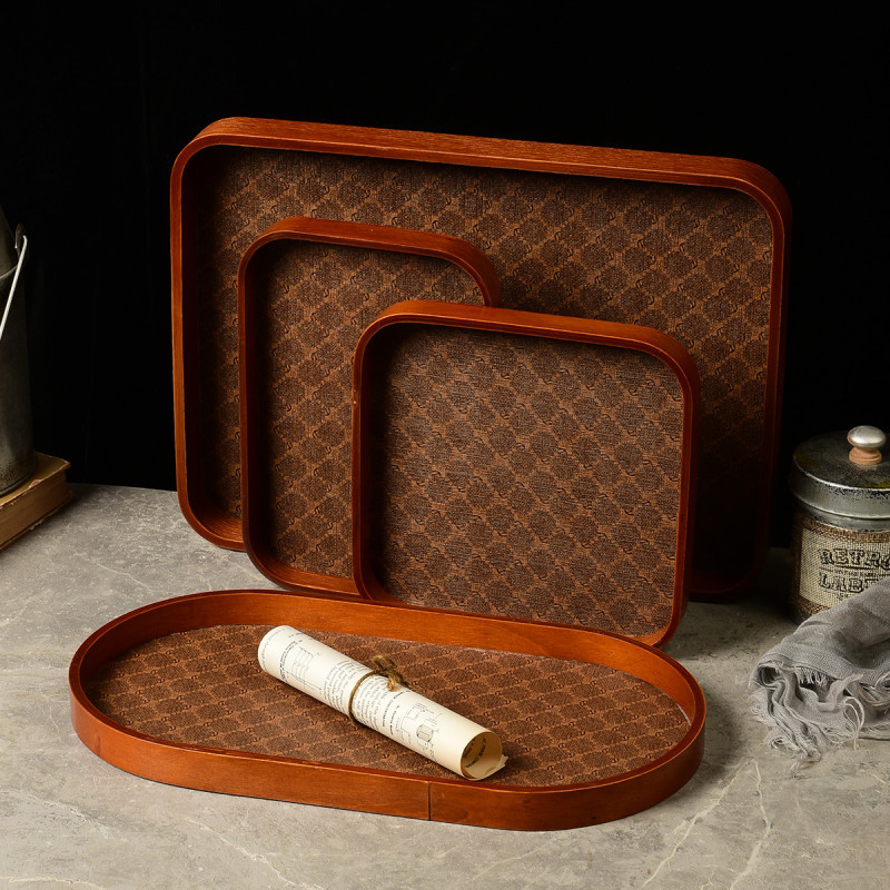 中国式ネット赤レトロデスクトップアクセサリー置物鍵玄関収納ケース軽豪華皮革中国式茶盤トレー家