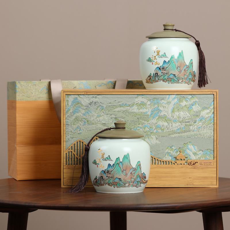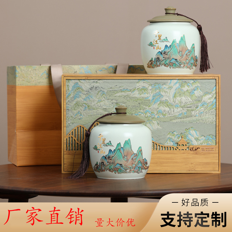 茶葉包装ギフトボックス新型緑茶紅茶通用茶葉缶中国式山水陶磁器密封缶貯蔵茶缶