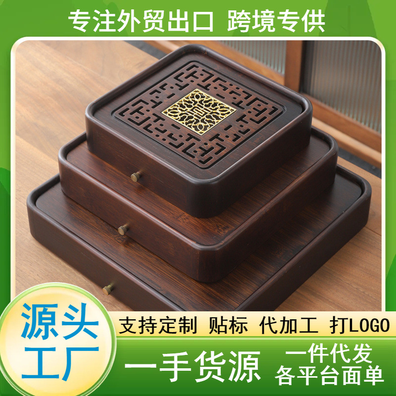 卸売小さな茶トレイ竹木製乾燥茶テーブル家庭用水の貯蔵と排水の 3 機能茶海ギフト秘密文配布ティーセット