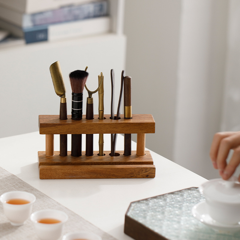 茶道茶道具六君子セット高級茶筆茶クリップ部品用品大全胡桃木泡茶ツールベース