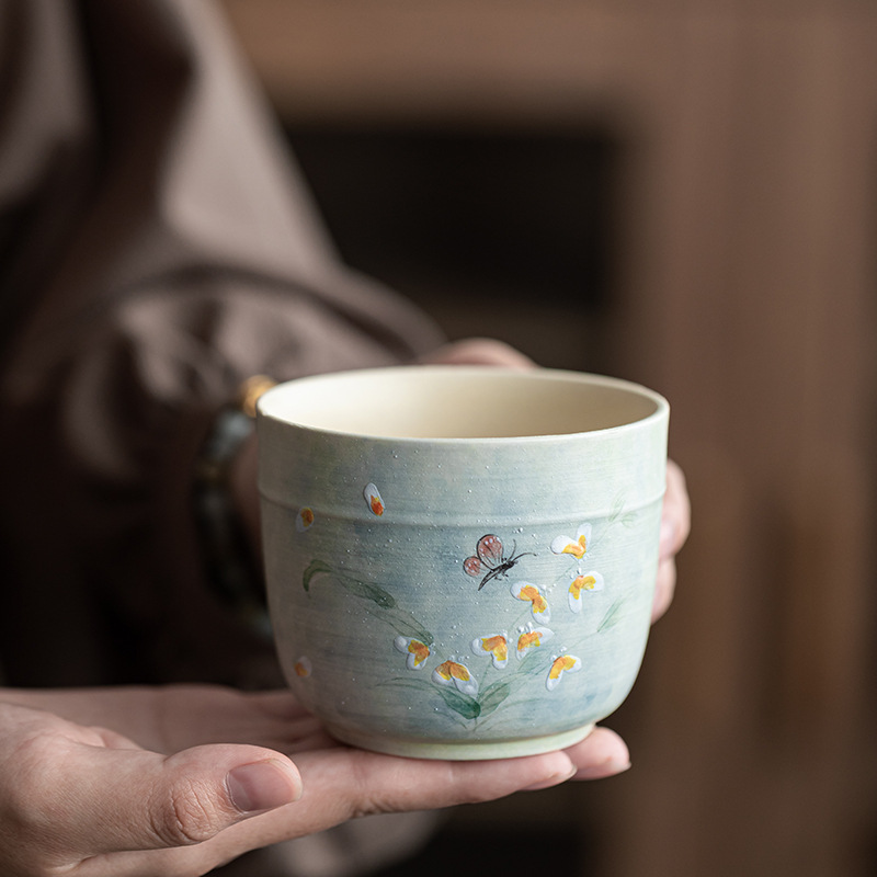 陶磁建水茶洗水彩風純手描き文心蘭トランペット泡茶水盆筆洗茶かすかめ茶器部品