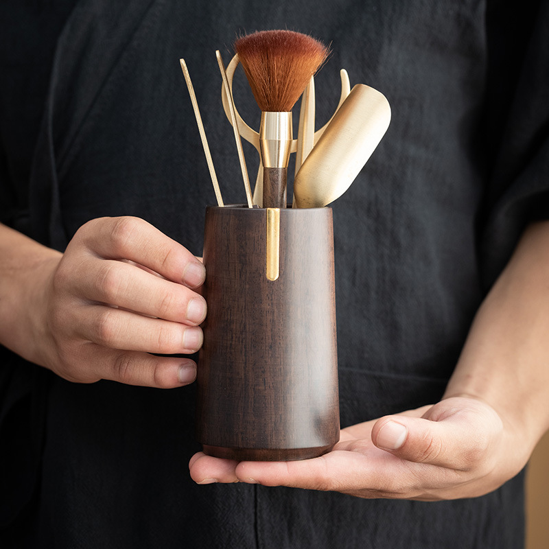家庭用黒檀茶道六君子セットカンフー茶道具銅茶クリップ零配茶筆セット大全実木部品