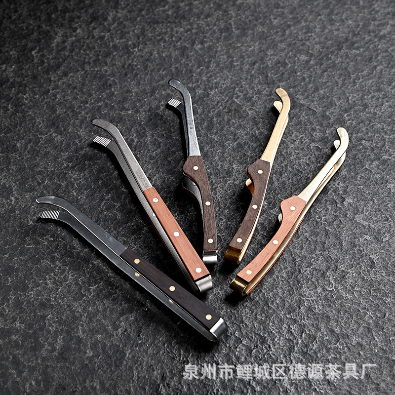 黒檀木ピンセット茶クリップ合金滑り止めカップクリップ茶茶ブラシ工具養壺筆茶道茶台部品