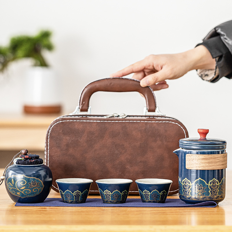 旅行茶器セットポータブル屋外ティーポット陶磁器カップ快客カップ1ポット4杯ビジネスお土産