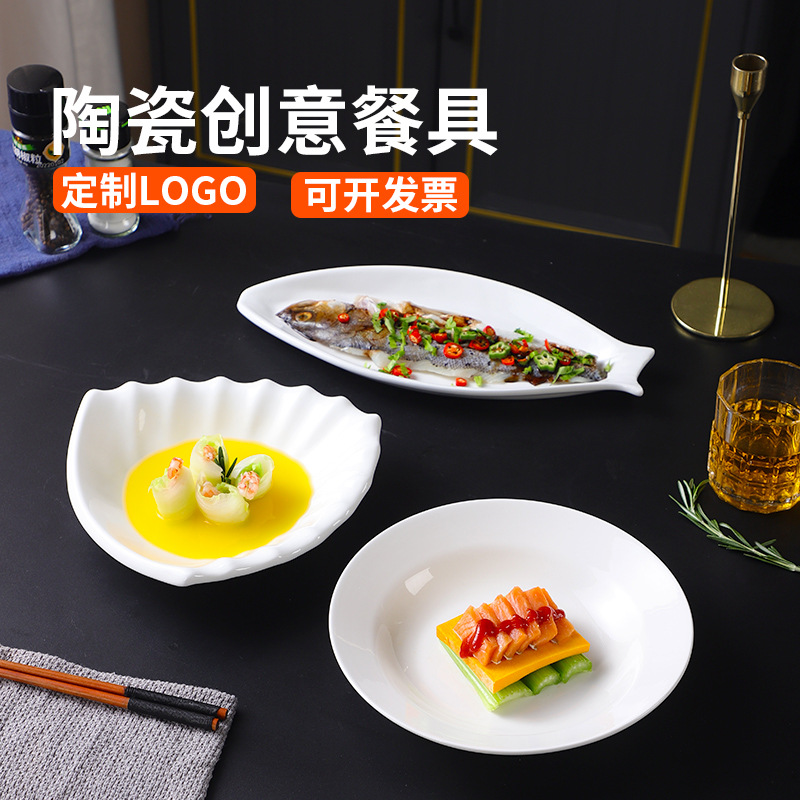 ホテルの冷たい料理の専用の皿のホテルの専用の料理の皿のレストランの不規則な陶磁器の皿の魚の皿の冷たい料理の皿