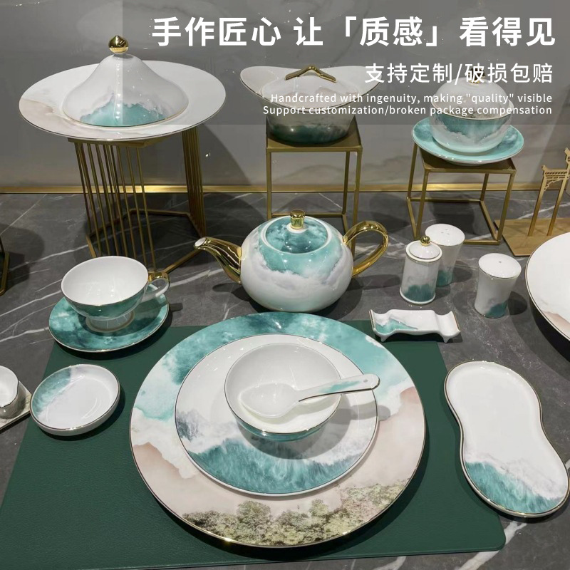 高級骨質磁器置物台食器皿セット高級食器ホテルレストラン会の新型陶磁器新中国式
