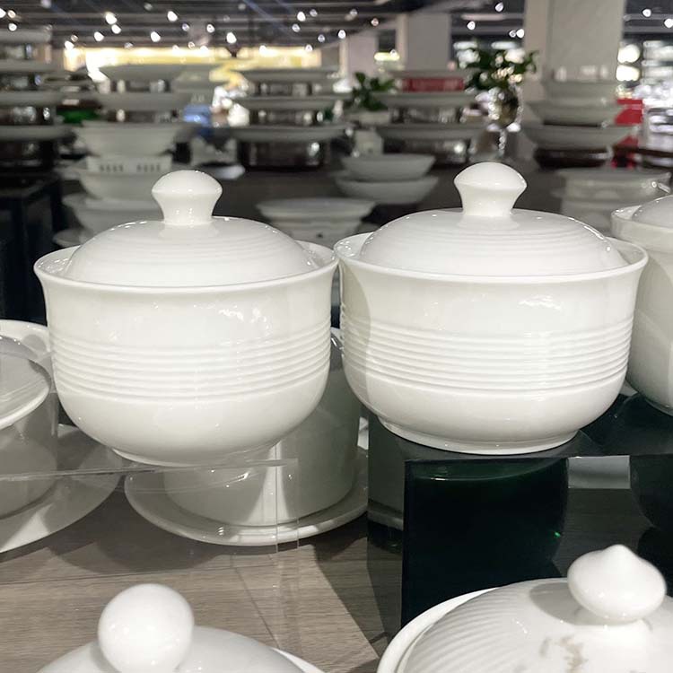 ホテル5.5-16インチ双耳双線湯窩ホテル蓋付き湯窩燕窩隔水煮込み家庭用陶磁器湯杯