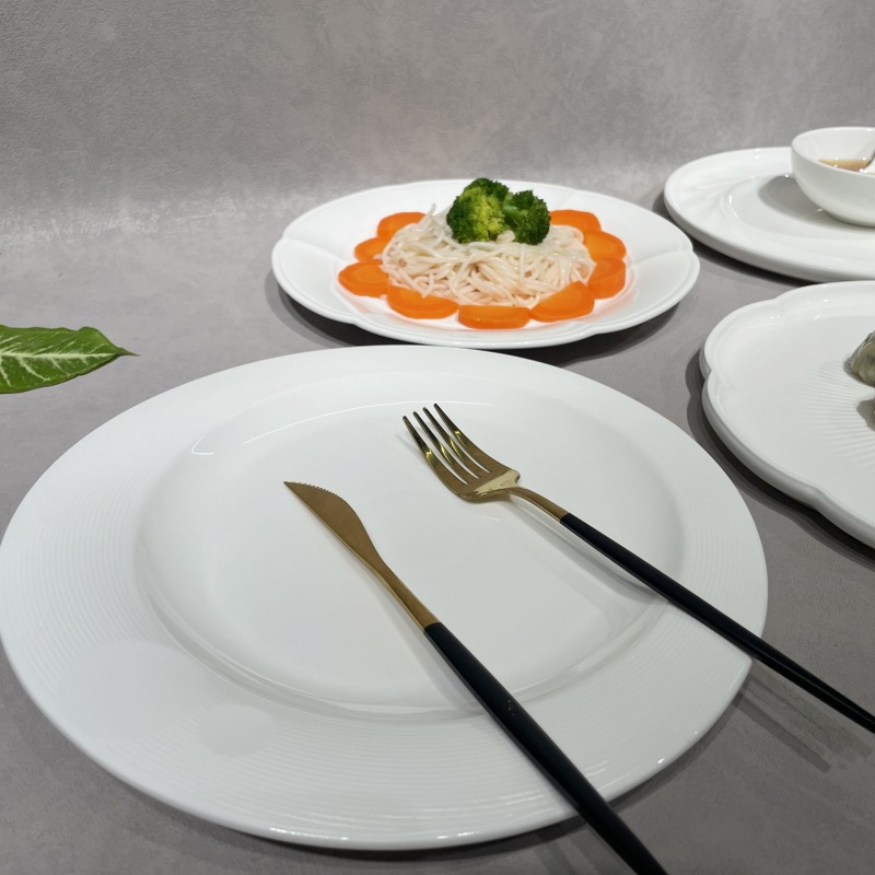 純白陶磁器洋食皿パスタ皿料理皿ホテル食器円形平皿ステーキ皿