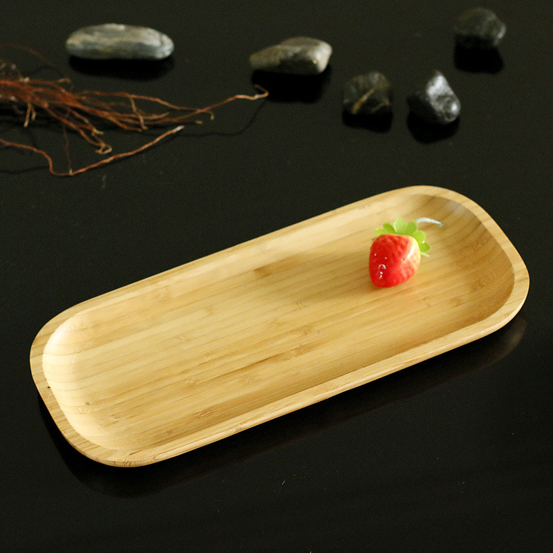 竹製の長方形の寿司の刺身の皿の料理と和風の食器のお茶を入れるお菓子の盛台の果物のキャンディーの種の小さいトレー