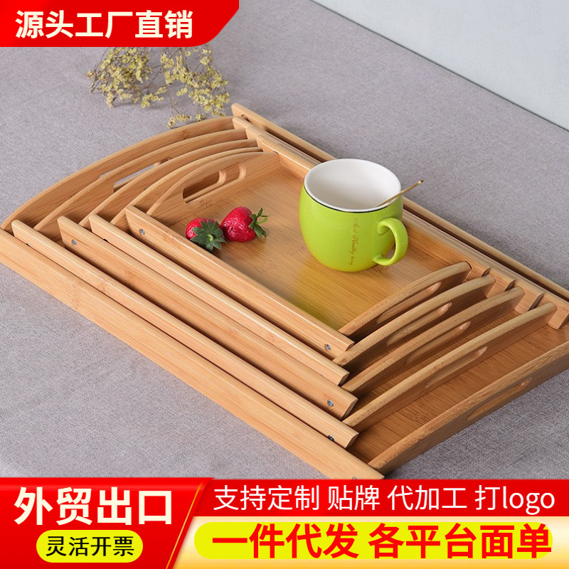 竹製トレイ、大型家庭用ドライフルーツトレイ、ティーカップ用、バーベキュー用竹トレイ、カスタマイズ可能な越境ティーセット、厚手