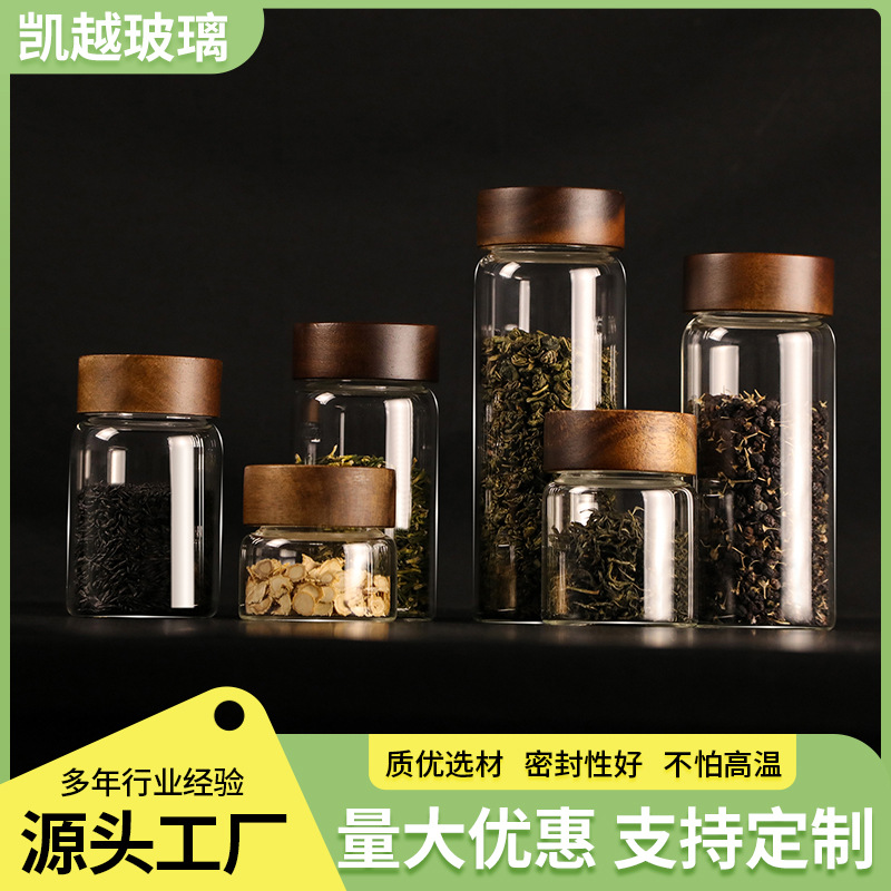 メーカー卸売りガラス密封缶貯蔵缶ガラス収納瓶アカシア木蓋ねじ口密封貯蔵缶