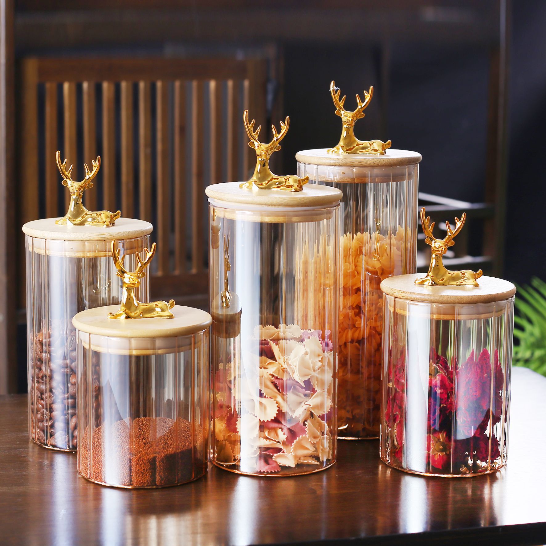 クロスボーダーヘラジカヘッドストライプ密封瓶高ホウケイ酸ガラス保存瓶穀物保存瓶コーヒードライフルーツ瓶