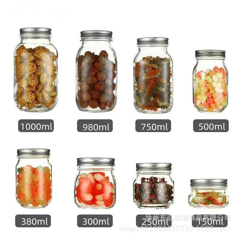 メイソンガラス収納缶家庭用キッチン五穀雑穀密封缶目盛りジャムキムチ瓶卸売り