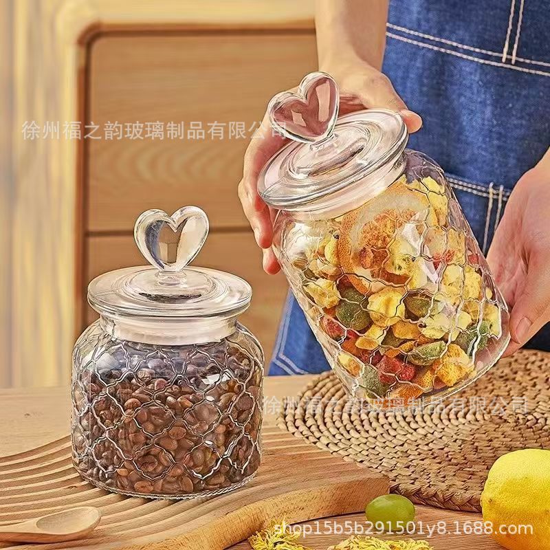国境を越えて透明な愛のガラス密封缶蜂蜜レモン瓶食品茶葉貯蔵缶家庭用