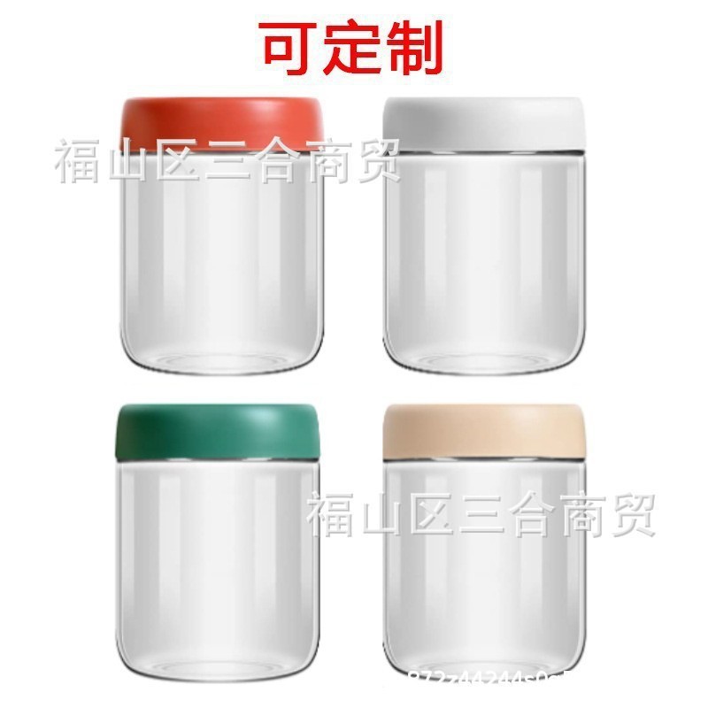 多規格ステンレス蓋ガラス缶高ホウ素シリコン透明貯蔵タンク雑穀乾燥果密封缶カスタム