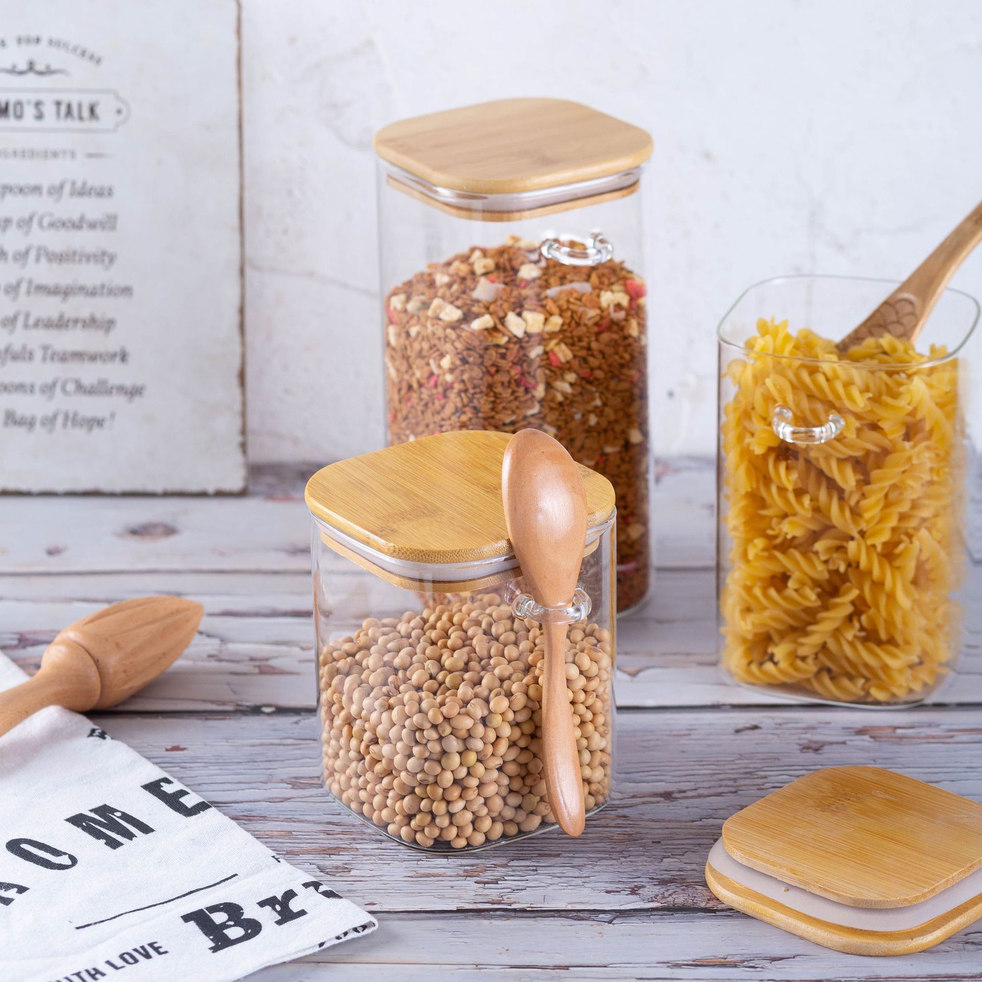 ガラス密封缶透明竹蓋茶缶家庭用キッチン食品雑穀収納ケース収納タンク